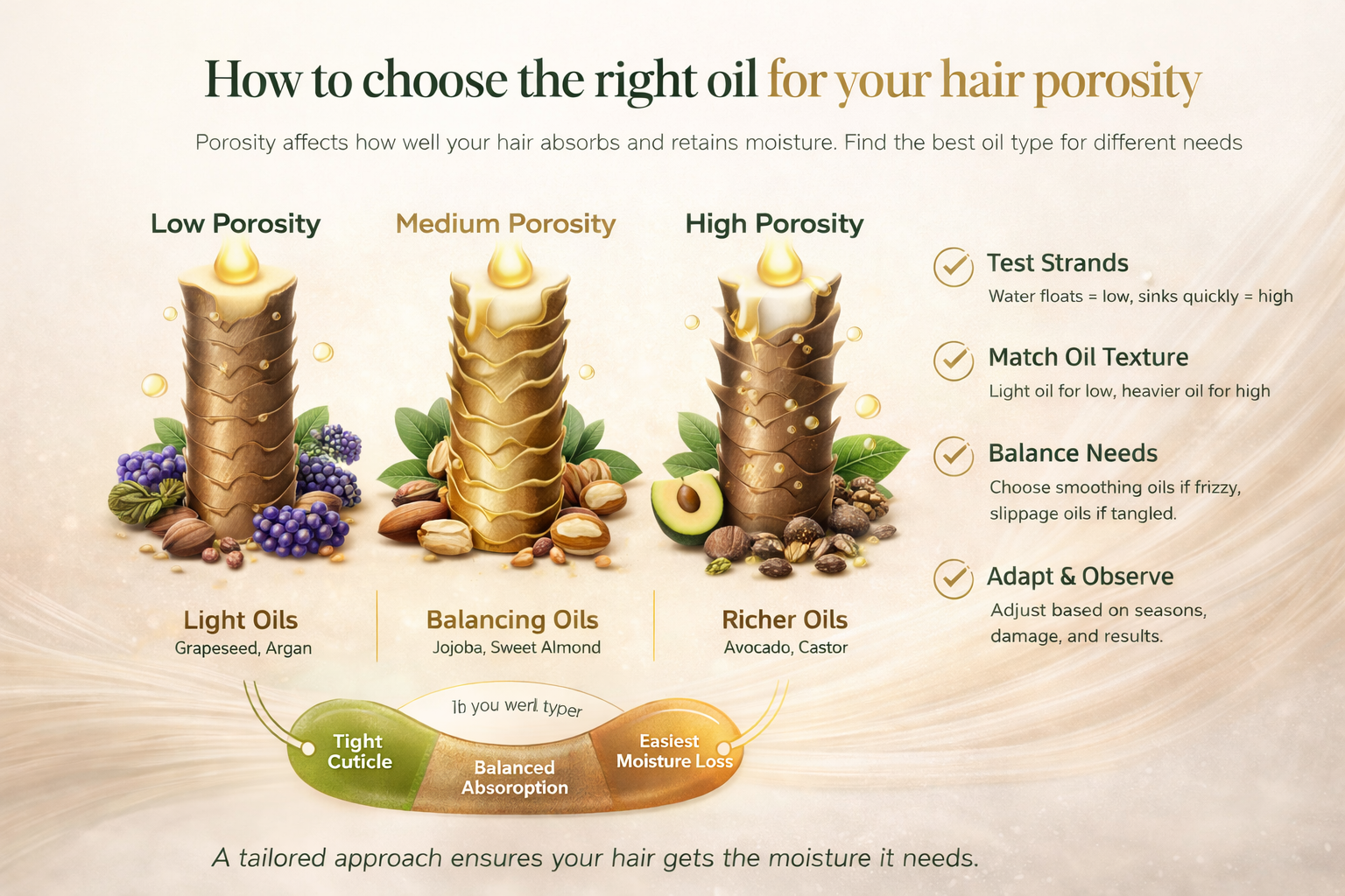 A calmer, more evidence-aware way to match oil texture, absorption, and finish to the way your hair actually behaves.